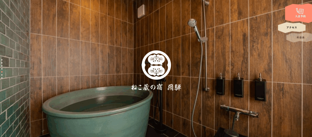 「ねこ蔵の宿 飛騨」は、古民家をリノベーションした宿で、猫と共に過ごす穏やかな時間が流れています。蔵や和の空間に猫がなじむ様子は、日常とは違った癒やしを感じさせてくれます。
