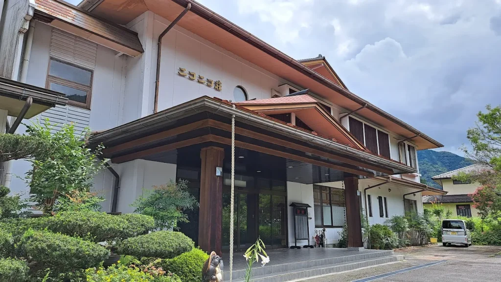 下呂市の湯屋温泉にある「ニコニコ荘」は、気取らない素朴な温泉宿で、看板猫が静かに寄り添ってくれる癒やしの空間です。