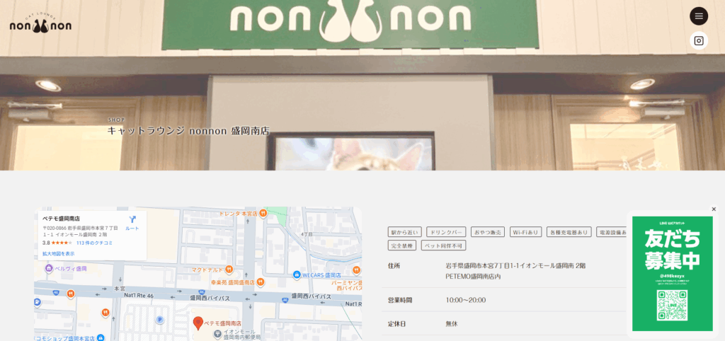 全国チェーンの猫カフェで、盛岡市内では大型店舗。